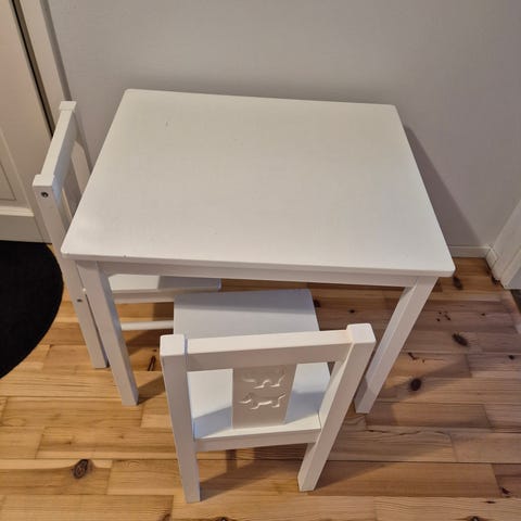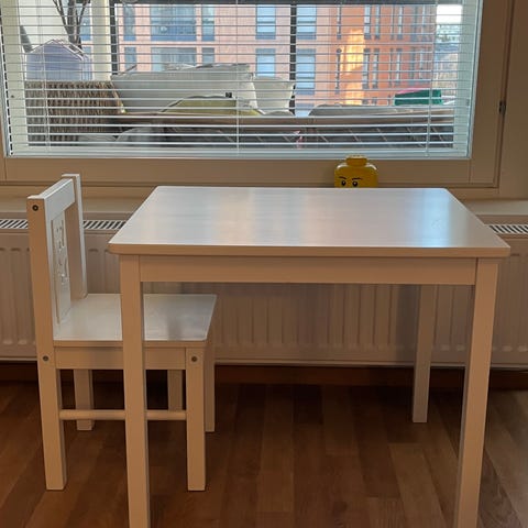 Myydään pari vuotta vanha Ikean Kritter lastenpöytä. Pöydän pinta on joistakin paikoista hieman naarmuilla ja kuvista näkyy pöydän kulmista lähtenyt vähän maalia. Muuten pöytä on ehjä.