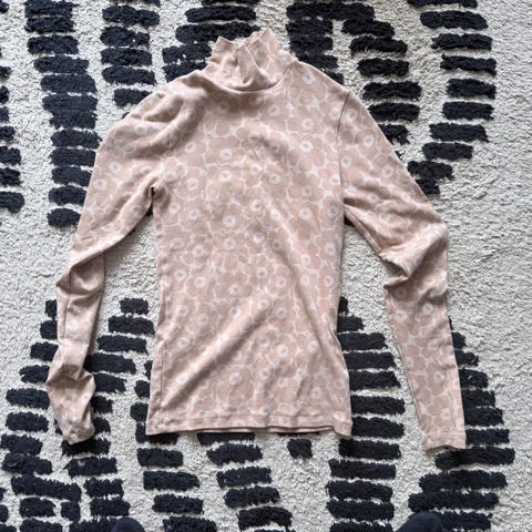 Vaaleanpunainen Marimekon erittäin hyväkuntoinen Aridi Unikko-mallia oleva pehmeä, veluuria oleva pooloneule.