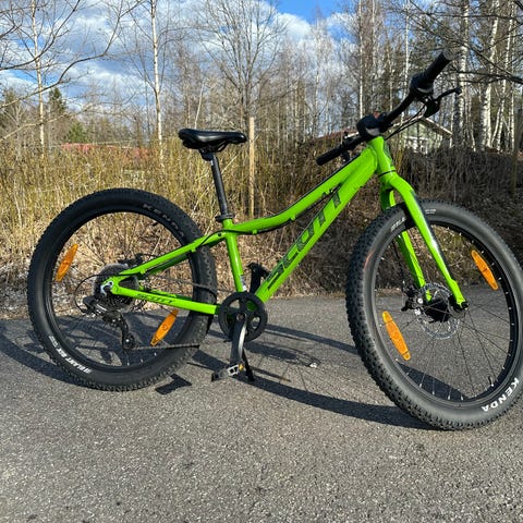 Suoraan ajosta Scott maastopyörä. Rungon koko M ja 27,5" kiekot. Pyörässä on etujousitus ja levyjarrut edessä ja takana. Sopii maastoajoon sekä yleiseen arkiajoon erilaisilla alustoilla.