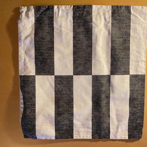 Myydään kuvanmukainen mustavalkoinen tyynynpäällinen. Valkoinen on lähempänä luonnonvalkoista kuin valkoista. Tyynynpäällinen on tukevaa kangasta ja siinä on mustat tereet.