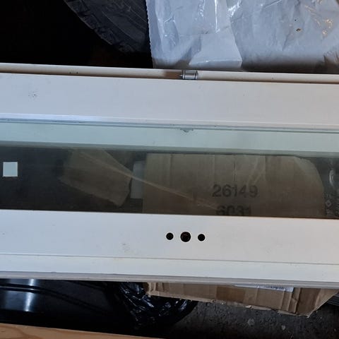 Mökki-ikkuna ja karmi, mitat 89.5x120cm. Karmin paksuus 10cm.
