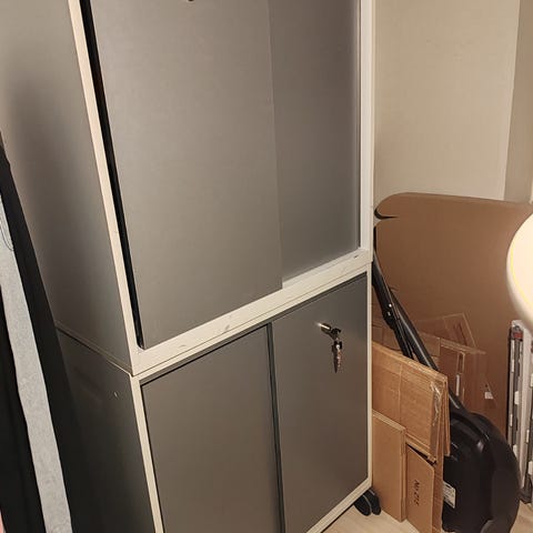 Myydään 2 kpl Iskun kaapistoja, hyllyjä. Alhaalla rulokaapisto ja kaksi ylintä hyllyä avohyllyjä. Sopivat täydellisesti esimerkiksi työhuoneeseen, kotitoimistoon, liiketilaan tai kotiin säilytyskalusteeksi papereille, kirjoille ja muille tavaroille.