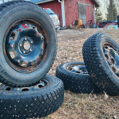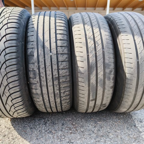 Varastoon jääneet Boran renkaat. 3 Nokian kumeilla ja yksi Fuldan. Pintaa on hyvin jäljellä, mutta on jo jonkun aikaa olleet varastossa.