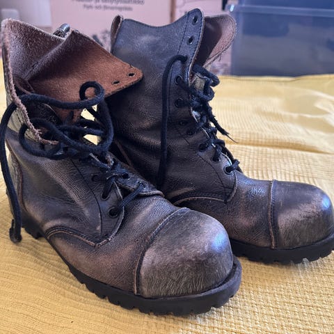 Kiertäneet mantereita ja festareita mutta edelleen täysin käyttökuntoiset vaikka pinnassa näkyy osumaa. Pohjasta ei käyttö mäy vieläkään ja kenkä on todella laadukas.