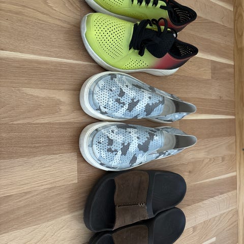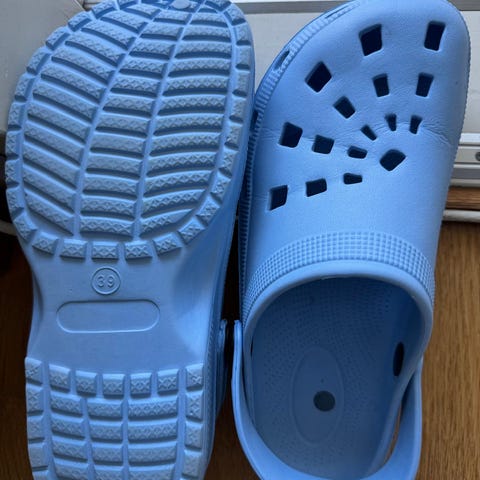 Itselle (oma koko 43/ 28cm) puolikkaan numeron liian suuret pehmo crocsit seuraavalle. Ostettu noin kk sitten uusina ja kokeiltu sisällä.