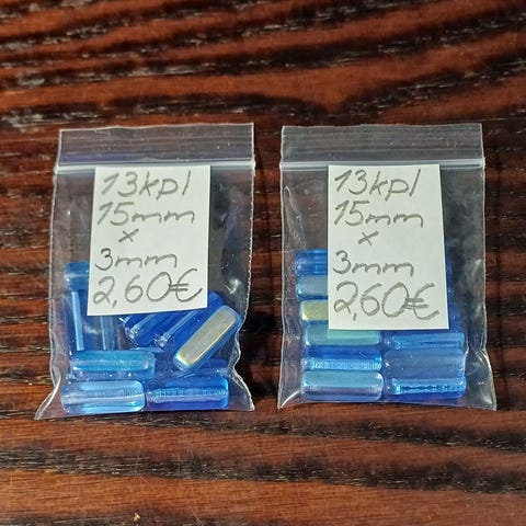 Helmiä. Kristallilasi helmiä. 18kpl. 12mm x 6mm. 3kpl vaalean vihreitä,2kpl tumman turkoosi,3kpl harmaata,1kpl tumman harmaa,7kpl vaalean ruskeita,2kpl tumman ruskea ja 1kpl musta. 0,10€/kpl. Yht. 1,80€. Haku tai postitus 2,95€ kirjekuoren kanssa 50g asti,5,70€ kirjekuoren kanssa 250g asti tai helposti kuorella 3,75€.