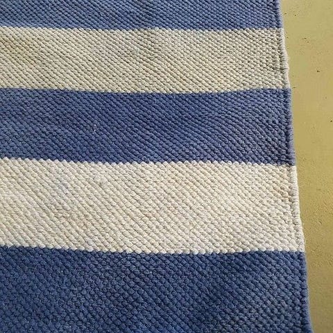 Räsymatto - carpet, rug valkoinen sininen 70x240cm pitkä