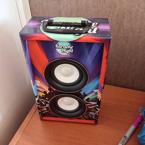 Senz kaiutin (bilekaiutin) ja 9kpl finhits karaokelevyjä.Tuotteen saa Turusta tai Salosta