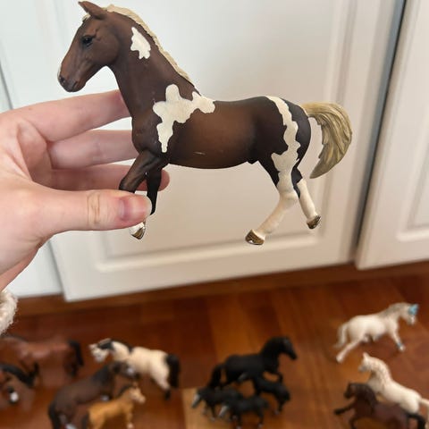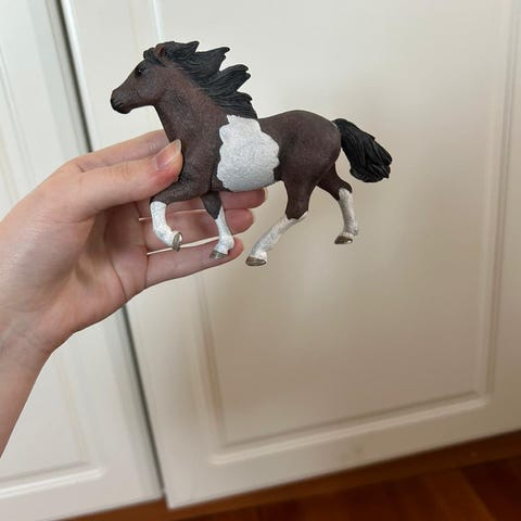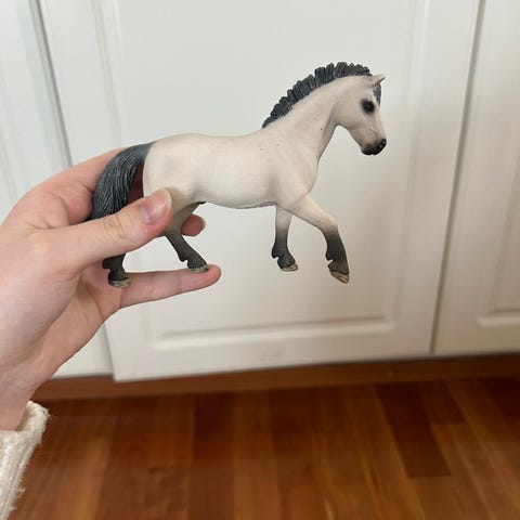 Schleich hevosfiguuri, ruskeavalkoinen. Muovinen leluhevonen, jossa yksityiskohtainen maalipinta ja seisaallaan oleva asento. Sopii leikkeihin ja kokoelmiin Schleich-eläinfiguurien kanssa.