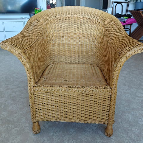 1900 luvun alun rottinki kalusteet. Kahden istuttava sohva ja 2 nojatuolia. Sisätiloissa säilytetty, nyt nostettu kuistille. Kaipaa pelastusta, koska meillä ei ole näille tilaa. Sisälle tai vaikka lasitetulle parvekkeelle. Toisessa tuolissa pari pinnaa katkennut käsinojan alta( kuvassa), sekä istuinosassa pientä koloa. Siksi näin halvat. Käytössä ei huomaa. Muuten ehjät. Hae pois hyvään kotiin🌸