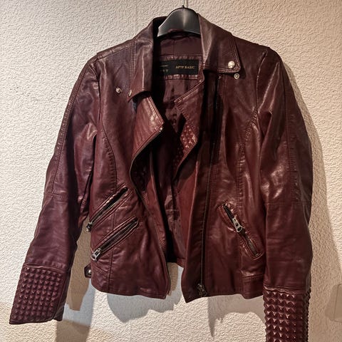Zara naisten tekonahkatakki koossa S. Musta, lyhyehkö malli, jossa epätasainen vetoketjukiinnitys edessä. Useita vetoketjutaskuja, olkaläpät sekä vyö helmassa. Valmistettu tekonahasta, vuori 100 % kierrätettyä polyesteriä.