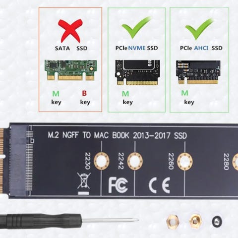 SATA-sovitin 2012 Apple MacBook Air ja MacBook Retina -mallien SSD-levylle. Sopii mallinumeroille A1466 ja A1465.