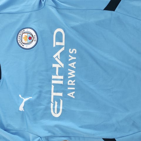 Fanipaita Manchester city 9-10.v 140 cm. Laadukas Puman materiaali. Ehjä ja pesty koneessa. Muutamia haaleita tahroja pesusta huolimatta (katso kuvat). Huomioitu hinnassa. Ovh.85€.