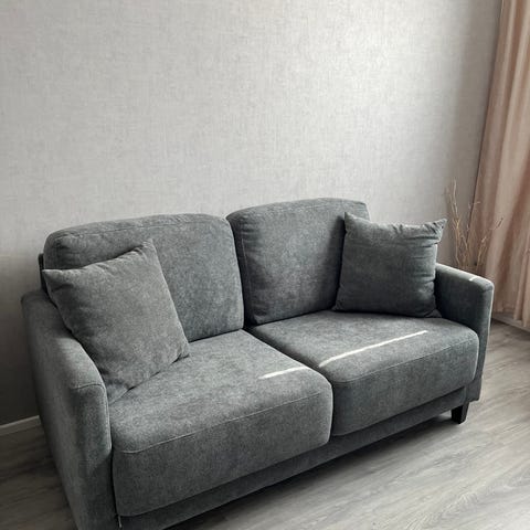 Tummanharmaa kangasverhoiltu vuodesohva. Sohva muuntuu kahden hengen vuoteeksi taittuvan mekanismin avulla. Selkätyynyt ovat irrotettavia. Sopii olohuoneeseen tai vierashuoneeseen istuma- ja nukkumispaikaksi.