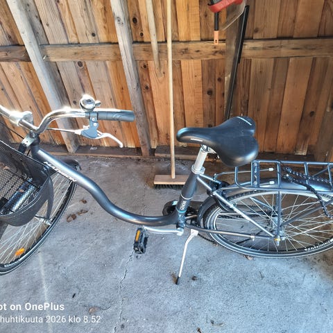 Uuden veroinen, v-23 syksyllä uutena ostettu pyörä. 3-vaihteinen, käsi- ja jalkajarru. Rengaskoko 26". Erittäin kevyt polkea ja matala joten sopii kaiken ikäisille.