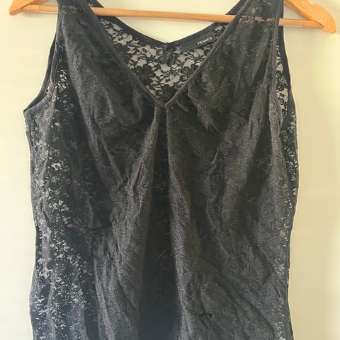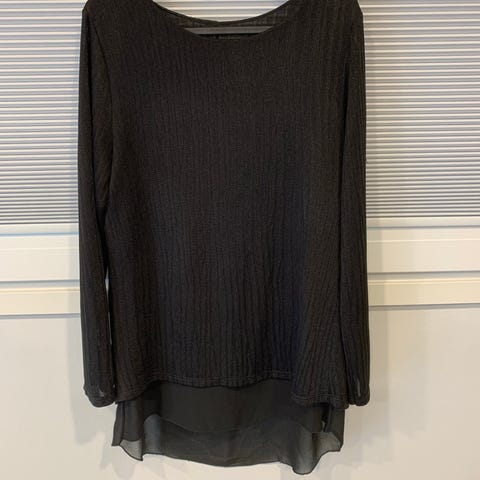 Pusero jossa toppi alla, kerran ollut juhlissa päällä. Koko 12 joustava toppi alla, joten menee hyvin monen kokoiselle. Menee hyvin juhlaan tai arkeen, ei hiosta. 95% polyester 5% elastane. Koristeen edestä saa poistettua, jos ei siitä tykkää.