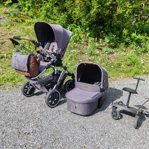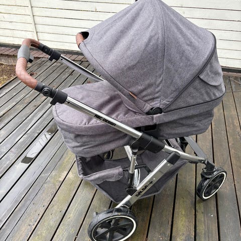 ABC Design vaunut vauvan kuljettamiseen. Kuvan mallissa on kantokoppa ja kuomu, neljä pyörää sekä runko. Nämä ovat yhdistelmävaunut. Istuinosa on erikseen. Olleet käytössä ainoastaan yhdellä lapsella ja säilytetty aina lämpimässä varastossa. Siistit! Kevyet ja hyvä työntää myös talvella, koska isot renkaat.
