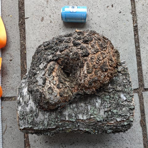 Valmis kaunis Pahka-aihio työstämiseen, toiselta puolelta sileäksi sahattu. Mitat n.26x26cm ja syvyys n.8cm.
