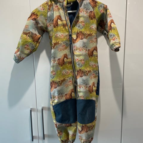 Hyvässä kunnossa. Vahvike osissa pientä kulumaa. Koko lappua en löytänyt, mutta ollut 3-viotiaalla, ehkä 98-104 cm.