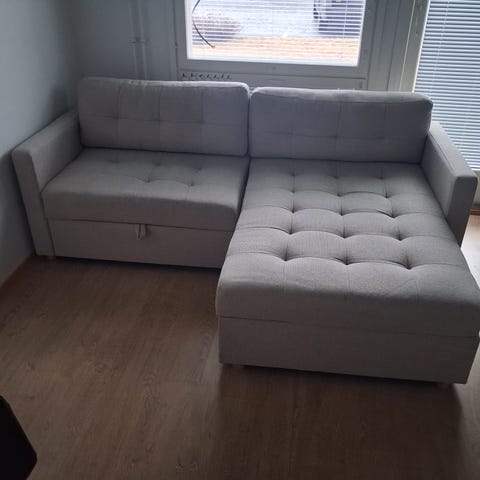 Myydään vuodesohva. Hyvässä kunnossa, mutta kahvia kaatunut pitkälle osalle, ei ole yritetty poistaa (kts. kuva). Kuvan koritetyynyt eivät kuulu kauppaan. Hinta 50€. Asunto on kätevästi 1. kerroksessa, mutta tarvittaessa autetaan ulos kantamisessa. Myydään tarpeettomana.