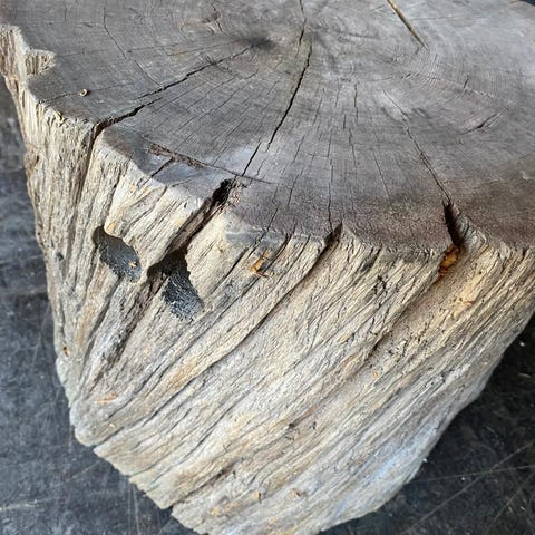 Pahkapölkky työstettäväksi. Pahkan leveys n.20cm ja pölkyn korkeus n.38cm.
