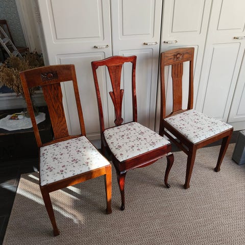Myydään 2 kpl kunnostettuja vanhoja tuoleja. Ollut lähinnä sisustuksessa. Hinta 30€/ kpl.