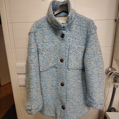 Blue berry pitkä takki naisille, koko L. Materiaalina denim, sininen väri. Edessä nappikiinnitys koko pituudelta. Muutama napinläpi on hieman rispaantunut, katso kuva. Takissa suuret etutaskut ja pitkähköt hihat. Sopii arkipukeutumiseen ja kerrospukeutumiseen viileämpiin päiviin. 35 € + postituskulut Toridiili ei ole käytössä.