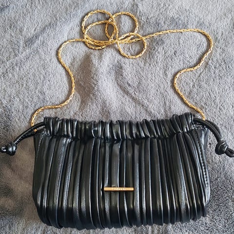 Tyylikäs iltalaukku , nahkaa sisällä hienostunut kangas.