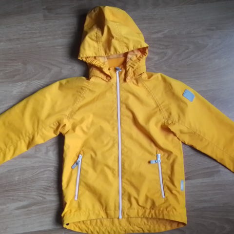 Vedenpitävä Reima Soutu välikausitakki koossa 122. Siisti yleiskunto, pidetty parempana takkina. Paikoin kuitenkin haaleita tahroja herkän värin vuoksi. Isoin hihassa, josta yritin ottaa kuvan. Myös takana heijastimessa pieni moite. Nimikoitu. Erinomainen takki kuitenkin vielä seuraavalle.