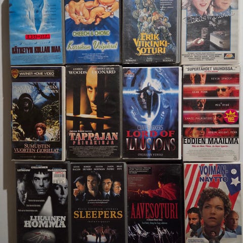 3 muovilaatikollista VHS kasetteja ja kahdessa muovipussissa. Tarjoa hintaa. Löytyy alkuperäinen Robocap ja Tähtiensota elokuvia ym.
