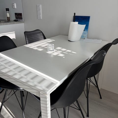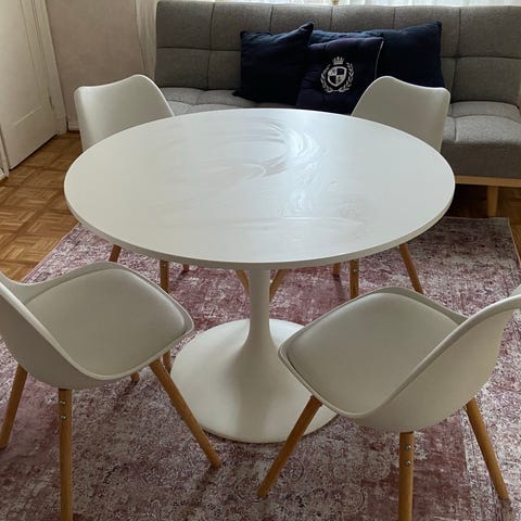 Pöytä ostettu Ikeasta ja on todella vähällä käytöllä ollut. Tuolit myös erittäin hyvässä kunnossa. Hintaa saa tarjota.