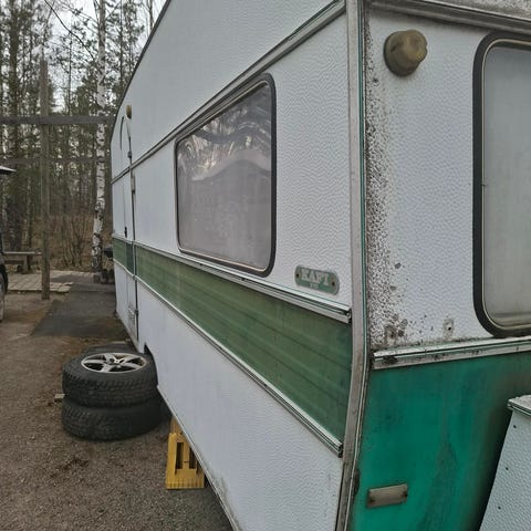 Vaunu purettavaksi esim alusta ym Ok. Puu kaatunut päälle kori vaurioitunut ei pysty hinaamaan.löytyy käyttökelpoisia osia ikkunoita ym ym