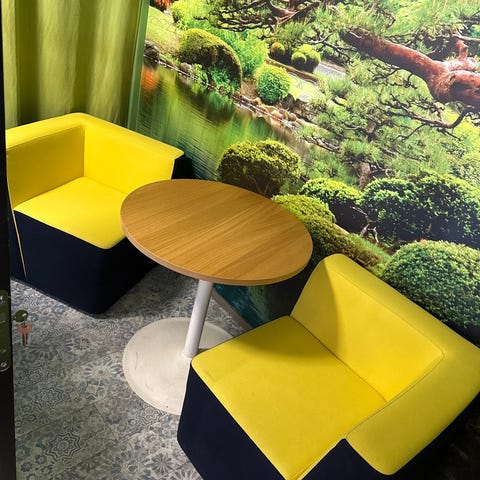 Matala pöytä, jossa kivinen pöytälevy. Vain hetken aikaa ollut käytössä parvekkeella. Pöytä on tukeva ja pysyy hyvin pystyssä, mutta meillä on pieni lapsi joka kiipeilee. Pöytä on painava. Kolme puista jalkaa joiden pinta on kulutettu.
