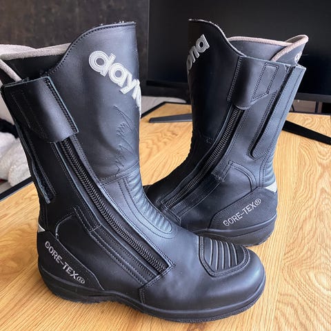 Myydään Daytona Flash ajosaappaat. Hyväkuntoiset. Pientä nirhaumaa tullut käytössä vasemman jalan sisäsyrjään käytöstä. Näkyy kuvassa.