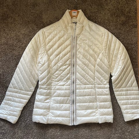 Esprit naisten untuvatakki, koko 38 S. Väri vaaleanpunainen. Materiaalina untuva, vaakasuorat tikkaukset. Takissa on korkea kaulus ja etupuolella vetoketjukiinnitys. Sopii arki- ja vapaa-ajan käyttöön viileämpiin säihin.
