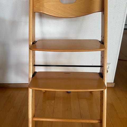 Kinderkraft syöttötuoli turvavaljailla ja syöttöalustalla. Kunto on hyvä, mutta käytön jälkiä on.