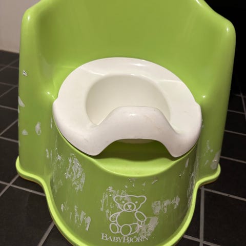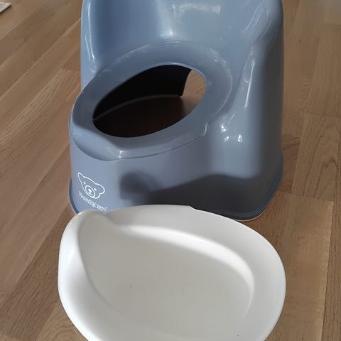 Babybjörn potta. Harmaa ulko-osa ja valkoinen irrotettava sisäosa, joka helpottaa puhdistusta.