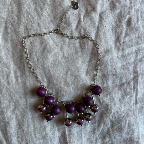 Kotimainen Aarikan puuhelmistä tehty kaulakoru. Käyttämätön.
