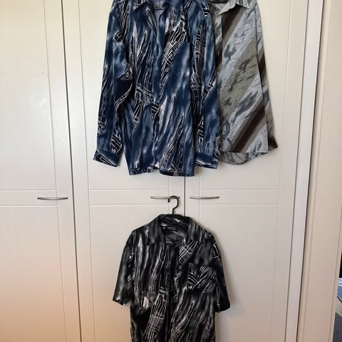 Retro / vintage miesten kirjava lyhythihainen kauluspaita, koko L. Paita on ehjä ja siisti, värit ehkä aavistuksen haalistuneet. Paidan pituus olkapäältä helmaan n. 70 cm, hartiamitta n. 50 cm, rinnan ympärysmitta n. 115 cm ja hihan pituus kainalosta n. 17 cm. Hinta 10 e. Voin myös postittaa, jolloin postimaksu Matkahuollon xs-pakettina 6,80 e ja Postin pakettina 7,90 e.