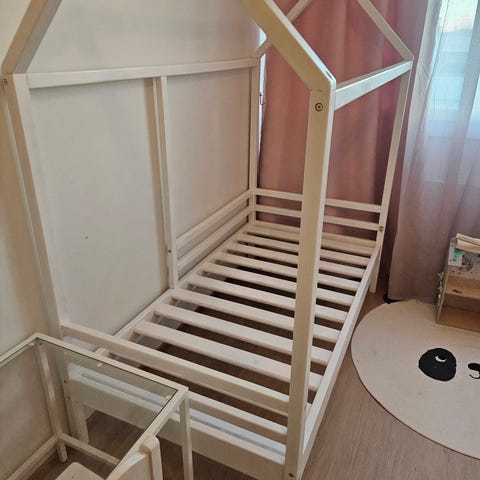 Kolme vuotta käytössä ollut puinen talosänky + aluslaatikko. Hyvässä kunnossa.