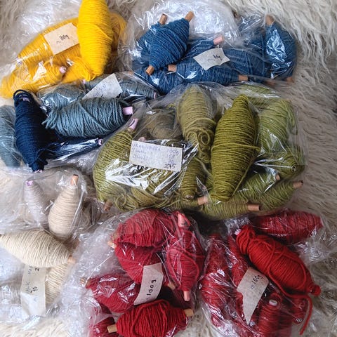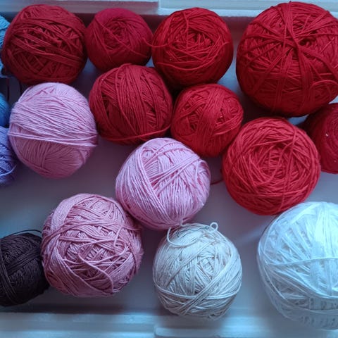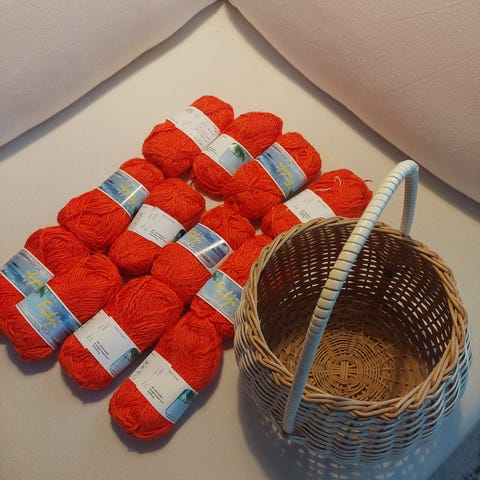 397 g poltetun okran väristä villa/puuvillalankaa. Kerä 50 g = 140 m
