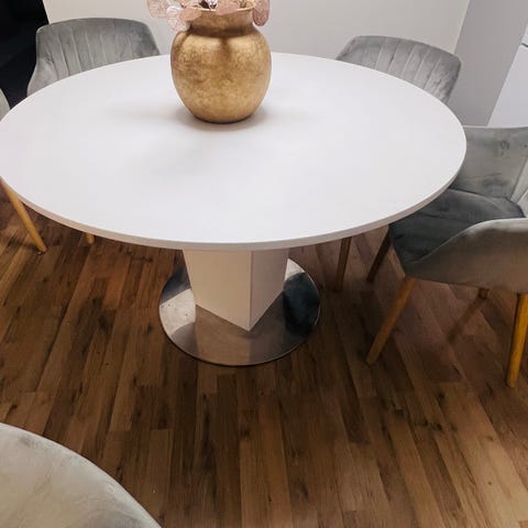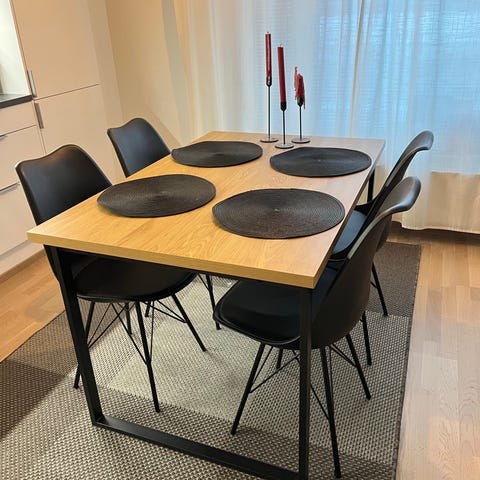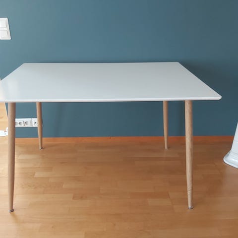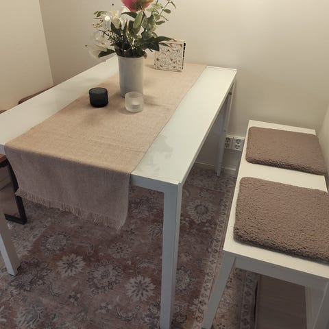 Kaunis ruokapöytä, joka sopii pieneenkin keittiöön. Ollut käytössä muutamia kuukausia. Voit ehdottaa omaa hintaa.
