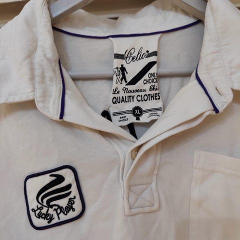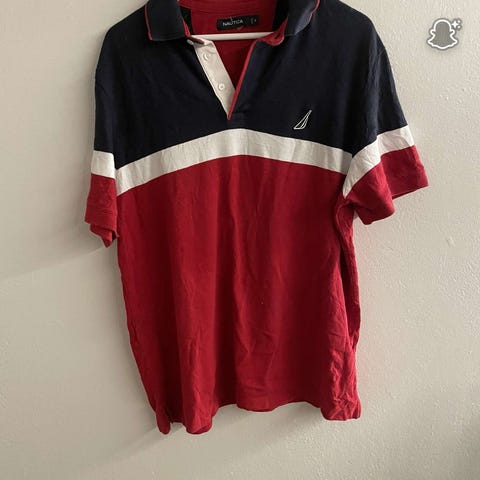 Chaps miesten pikeepaita koossa XL. Valkoinen puuvillainen paita, jossa vaakasuorat tummansiniset ja punaiset raidat. Kauluksellinen malli lyhyillä hihoilla ja napituksella kauluksessa. Rinnassa brodeerattu Chaps-logo. Materiaali 100 % puuvillaa.