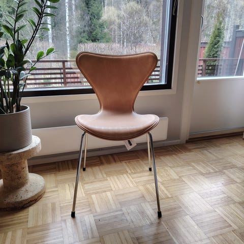 Hyväkuntoiset Fritz Hansen Series 3107 tuolit (4 kpl) eli klassikko seiska-tuolit.