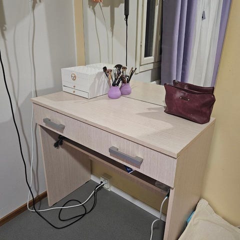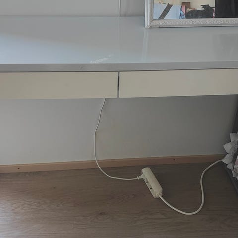 Hyväkuntoinen meikkipöytä peilillä, 2 pientä ja 1 iso vetolaatikko sekä lasikansi. Nouto Parkanosta.