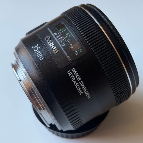 Vintage-tyyppinen Canon FD 35mm f/2 S.S.C. -objektiivi.