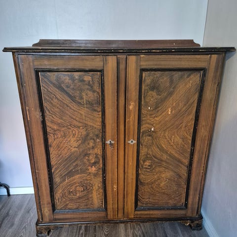 Vanha tammikaappi , hyväkuntoinen . 3 hyllykaappia , laatikko , kirjoitustaso