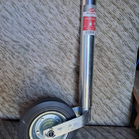 Putken halkaisija 48 mm, max kuorma 150 kg. Pyörän halkaisija 200 mm.
