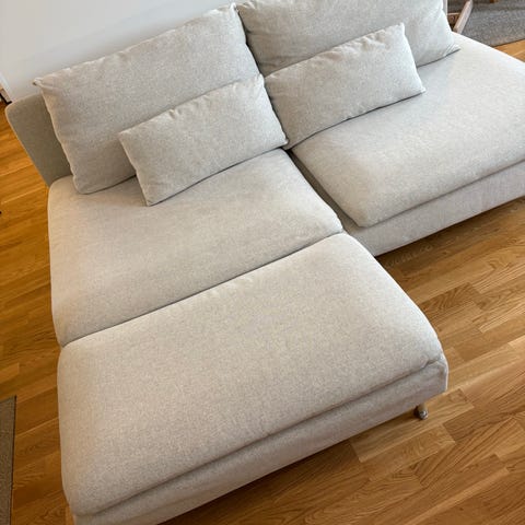 Söderhamn 1 istuttava sohva värissä Viarp beige/ruskea. Päälliset olleet käytössä pari vuotta, muuten erittäin siistissä kunnossa, mutta muutama pieni langanpurkauma istuinosassa ja pikkutyynyssä (vikat kuvat).