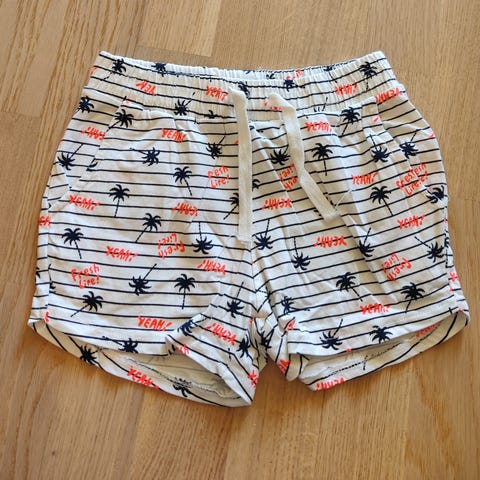 Lindexin ja Name Itin housuista leikattuja shortseja. Koko 110. Meillä näitä on pidetty kesällä lähinnä mekon alla ja tällaiseen käyttöön ovat vielä sopivia. Pientä tahraa/paikkausta/sauman kulumista näkyvissä. Kaikki tämä huomioitu hinnassa, eli kaikki yht. 1e.
